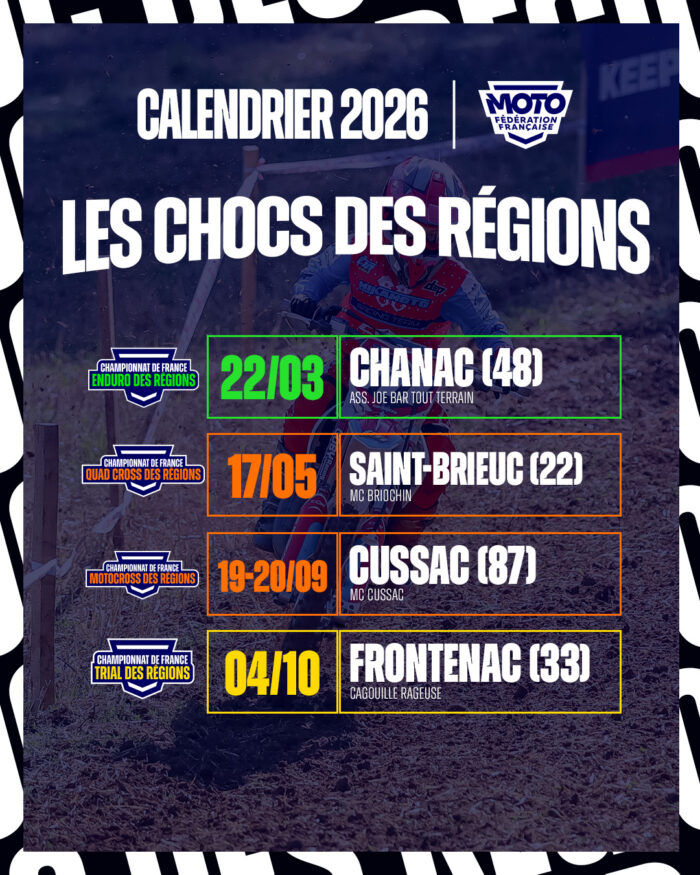 C’est le Championnat de France des Régions d’Enduro qui ouvrira une nouvelle fois la saison, cette fois-ci à Chanac, en Lozère. Très attendu, ce rendez-vous offre l’opportunité aux équipes régionales de se mesurer et revêt une importance particulière pour nos ligues motocyclistes, chacune ayant à cœur de briller.